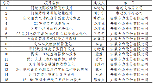 安徽叉車集團(tuán)多個項(xiàng)目在安徽省職工技術(shù)創(chuàng)新競賽中獲獎